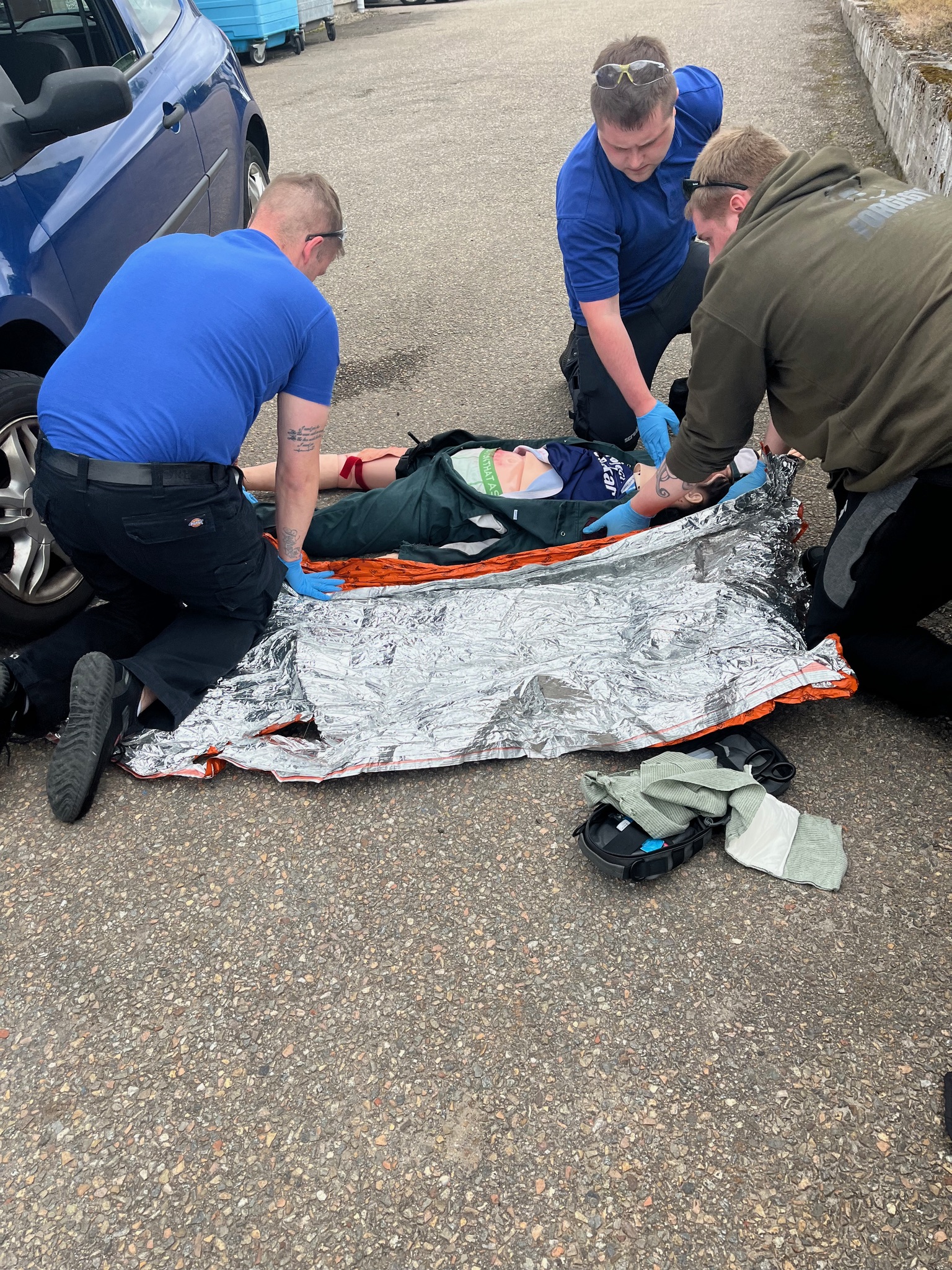 Not the time for a pat on the back! Recently, members of the Sandstone First Aid team had to deal with a serious Road Traffic Collision whereby a cyclist had been knocked down by a car. Using their skills, they aided in managing the scene, supporting medical personnel and most crucially – they provided ongoing casualty care until an ambulance arrived. During this time, they did not sit back and give themselves a pat on the back, but continually looked for signs of injury and quickly identified that the injured party may have broken their pelvis and could possibly have internal bleeding. By providing basic interventions, such as blankets for warmth, the team delayed the possibility of hypovolemic shock setting in, until the ambulance service arrives on scene.