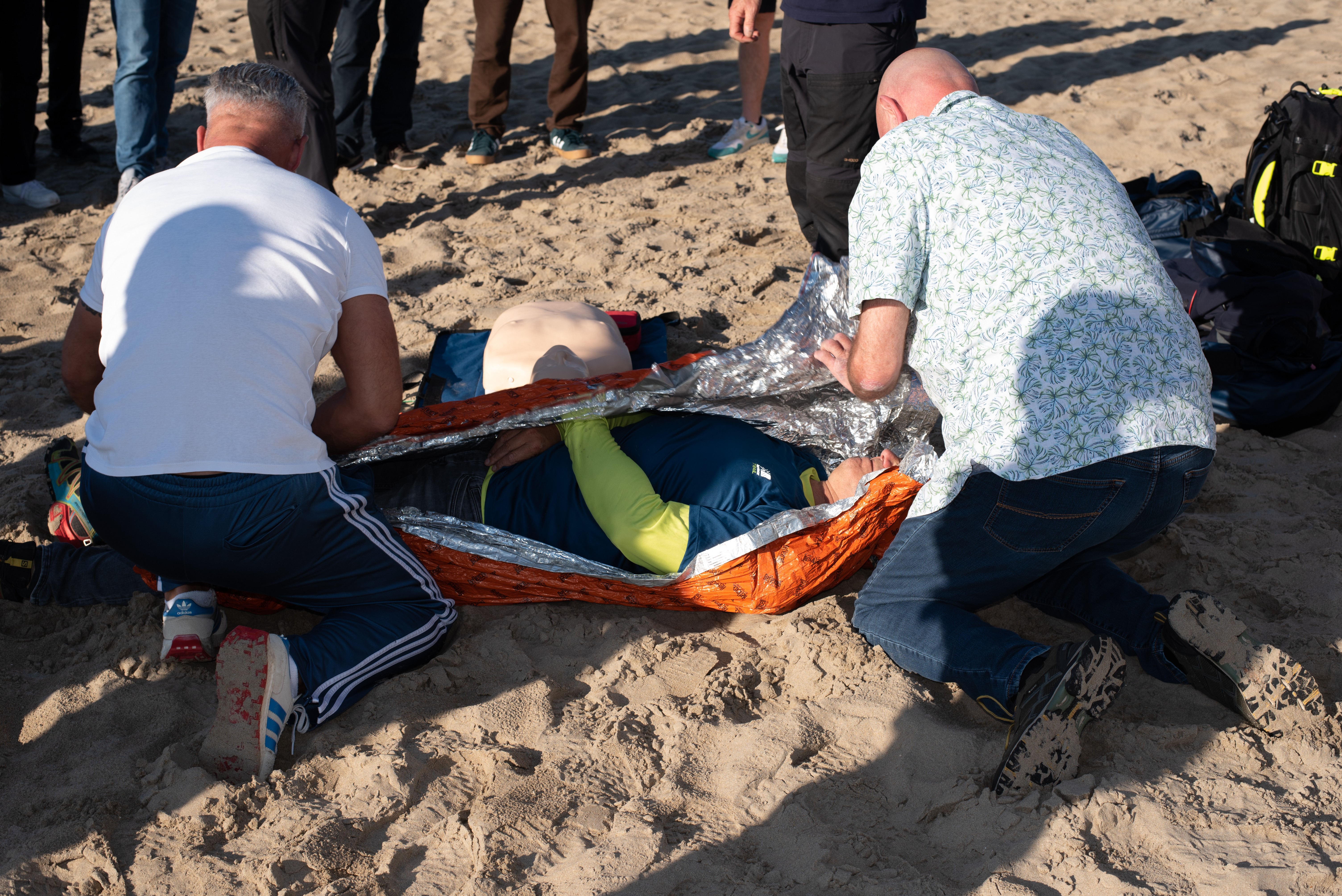 Each crew learned to stop a life threatening bleed, deliver CPR, use an AED and prevent hypothermia. Once they had mastered the basics as a team (a number of the guys work off shore so had a great grasp of the principles) they raced against each other to save a casualty. The team were super engaged and highly competitive!
